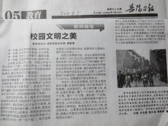 《校园文明之美》发表在《岳阳日报》上