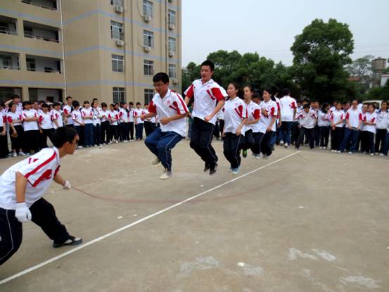 在刘建光校长的领导下,在陶乐副校长的具体策划下,在体育组老师的积极组织下,在全校班主任和任课老师的配合下,我校于五月中下旬开展了“阳光体育、团结体育、快乐体育”的“神采飞扬”的跳绳比赛活动。