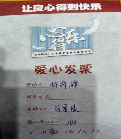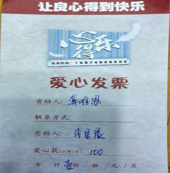 我校初一年级宏志班学生李星晨在张安乔老师的极力推荐下,不辞辛劳多次带记者登门考察,确定为市直中小学唯一一名《心得乐》资助对象。