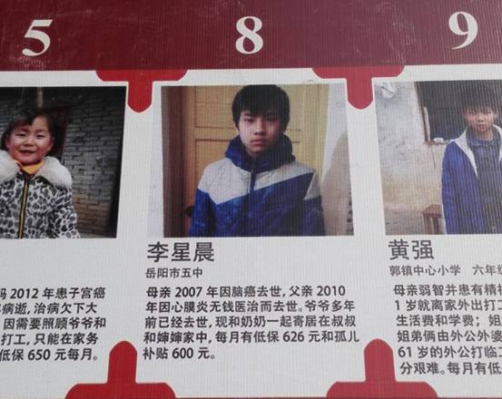 就在岳阳大地上,就在我们不远的身边,有一群柔弱无助的孩子,正遭受着命运的折磨:亲人的离去,家庭的灾难,甚至无法救治的疾病,都沉甸甸地压在了他们稚嫩的肩膀上,可是,他们的身上流着岳阳人民不屈的血,用自己微薄的力量与命运抗争,这些穷孩子们就生活在我们的身边,生活在我们的同一个城市,生活在我们同一片蓝天下,却无法享受同样的阳光,无法享受同样的灿烂生活,无法享受同样温暖的爱。